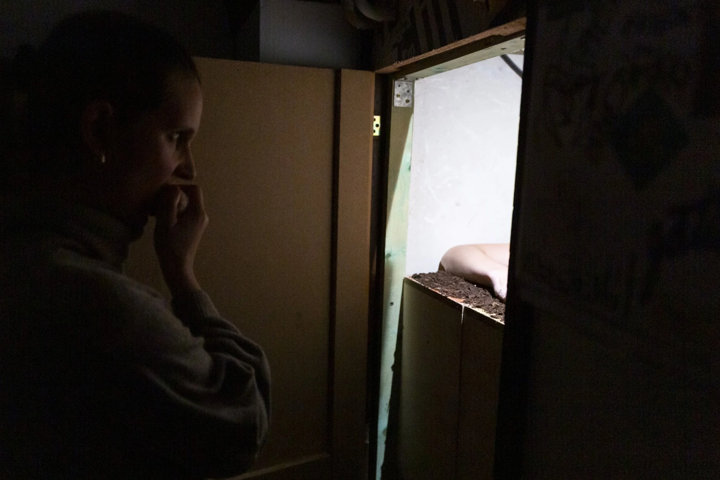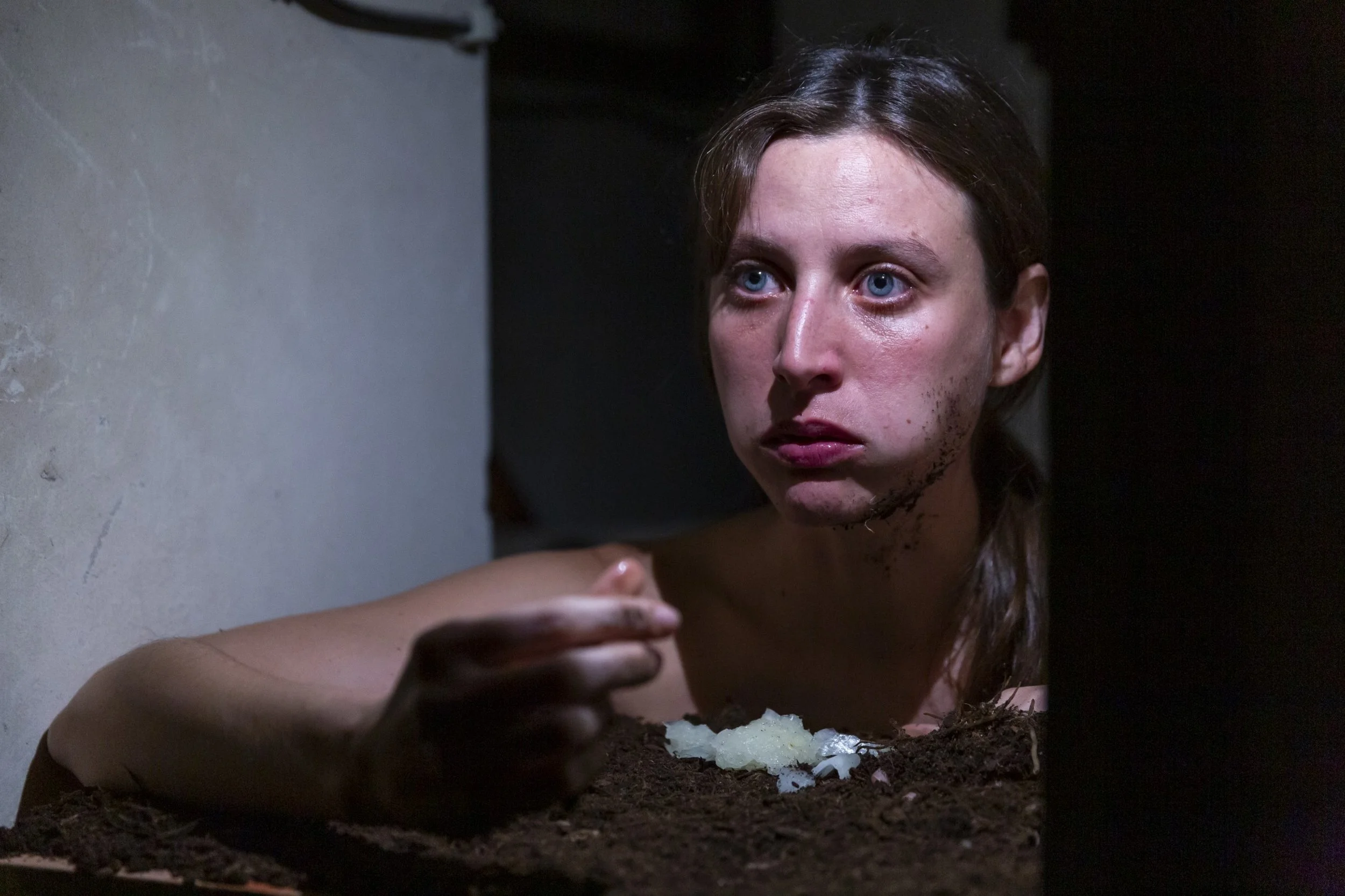Outside the room, the audience finds a plate full of onions: they are invited to choose one and bring it to her. Tears are nourishment for her growth, essential to her life.